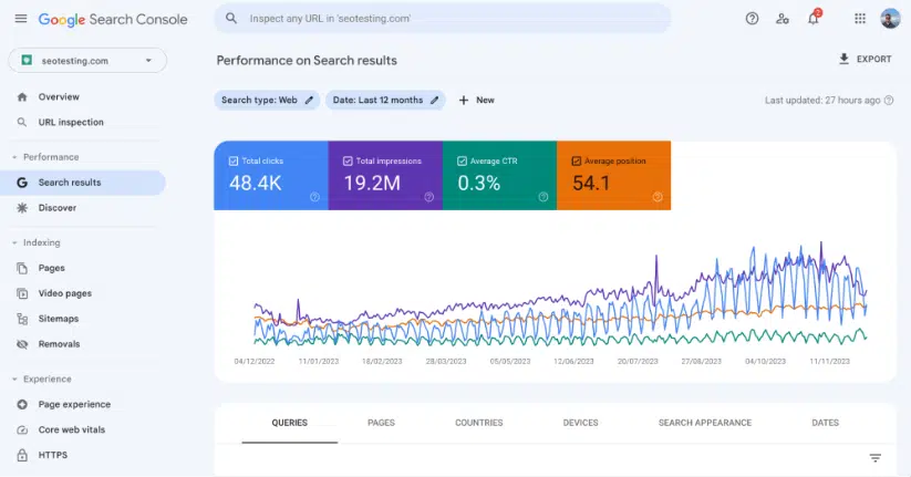 - Εξετάστε τις Αναφορές Απόδοσης Στην αναφορά “Απόδοση” του GSC, μπορείτε να δείτε ποια keywords οδηγούν την περισσότερη κίνηση και ποια είναι τα πιο δημοφιλή αποτελέσματα αναζήτησης για τον ιστότοπό σας. Αναλύστε αυτήν την αναφορά για να βελτιώσετε τις σελίδες σας και να εστιάσετε σε περισσότερες λέξεις-κλειδιά.